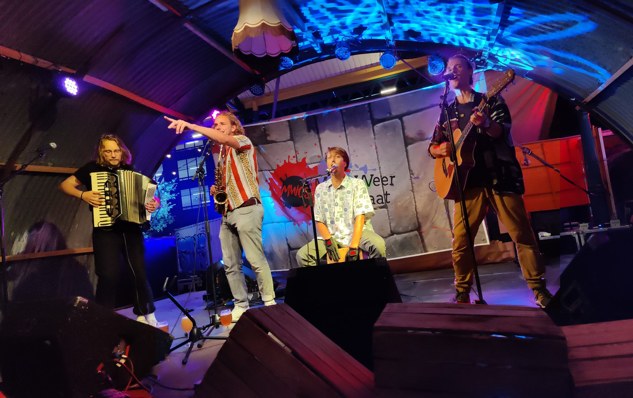 De band zet hoge energie neer in een uniek instrumentarium. Hedendaagse elektronische house en hiphop platen, tot herkenbare meezingers met akoestische instrumenten. Meerstemmige vocalen afgewisseld door sexy sax-solo’s en de nostalgische klank van accordeon, ondersteund door de ritmische motor van gitaar en cajon. Dat is Mooi Weer Op Straat.